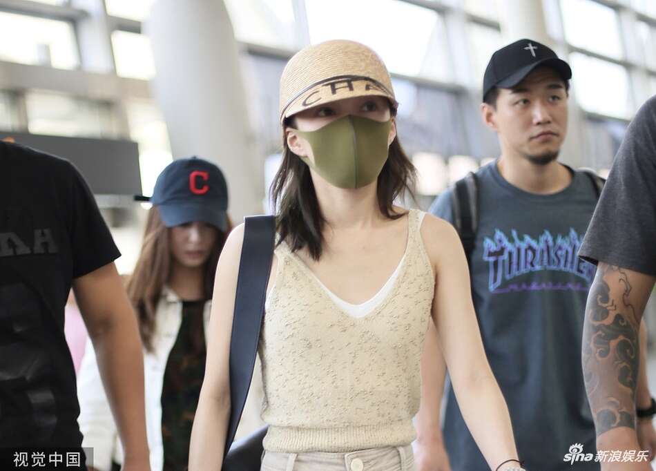 新浪娱乐讯 8月19日,张韶涵现身长沙黄花机场被拍。照片中,张韶涵身着驼色吊带上衣配米色长裤,用帽子口罩遮面显“巴掌脸”,身材娇小大秀A4腰。(视觉中国/图)
