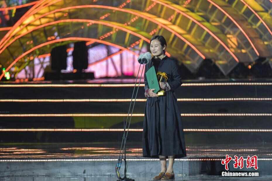 12月8日晚,第二届海南岛国际电影节在海南三亚落幕。首次增设的“金椰奖”奖项在当晚的闭幕式揭晓,《气球》、《大火将至》等中外影片榜上有名。图为电影《第一次的离别》的导演王丽娜获得最佳导演奖。中新社记者骆云飞摄
