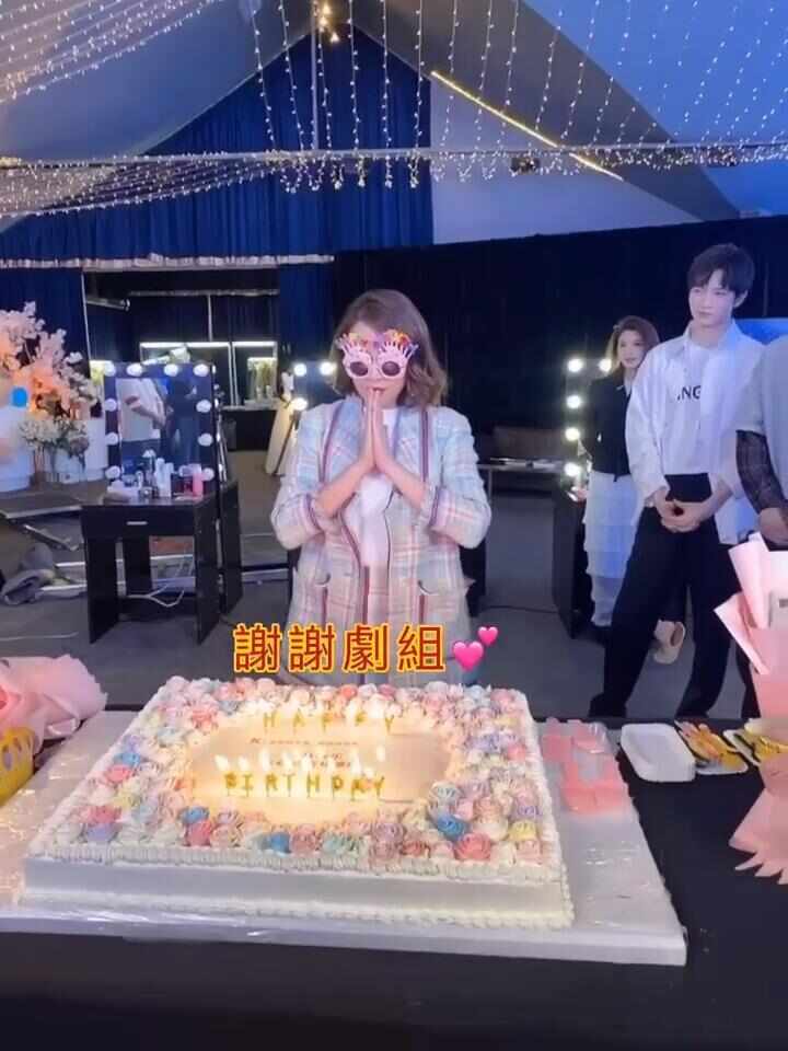 另外,陈乔恩所在剧组也给她准备了超大蛋糕公开庆生,陈乔恩认真许愿:希望世界平安,疫情早点过去。