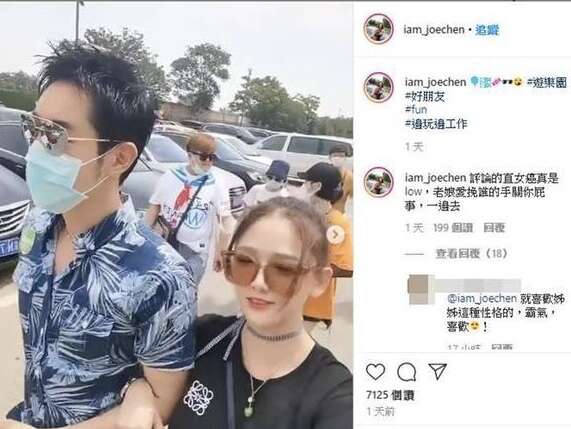 被质疑的出游照,来自陈乔恩在个人社交账号晒出的一组照片和视频。陈乔恩还对陈正飞发问:“你说你有多久没跟我来游乐园了?”对方回答十几年了,陈乔恩开心得哈哈大笑。因为陈乔恩自然地挽着陈正飞的手臂,有网友指出不妥——你已有男友,为何还跟别的男人挽手?没想到,陈乔恩直接在评论区回怼:“评论的直女癌真是low,老娘爱挽谁的手关你x事,一边去!”