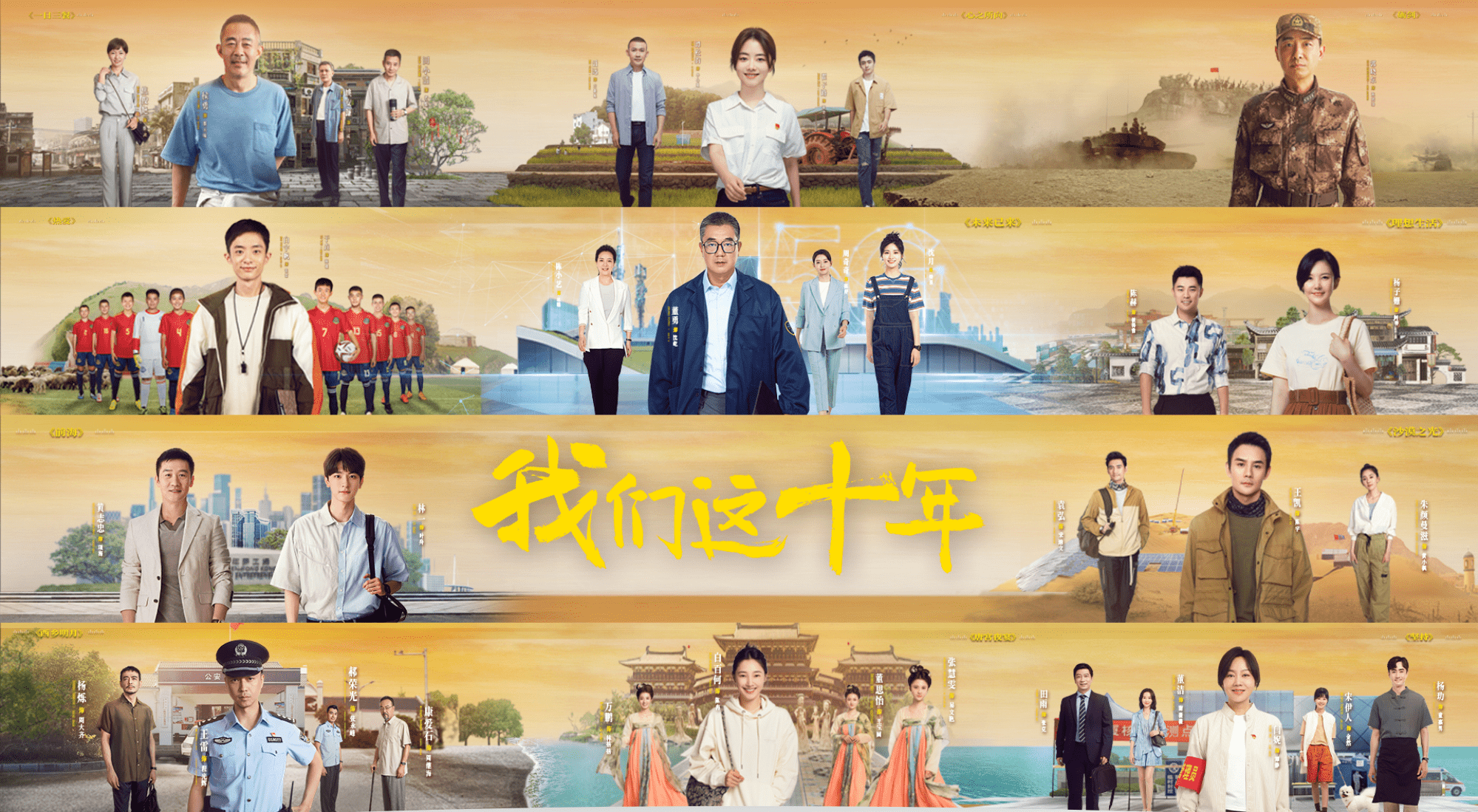 正在广东卫视热播的电视剧《我们这十年》分为《一日三餐》《心之所向》《砺剑》《热爱》《未来已来》《理想生活》《前海》《沙漠之光》《西乡明月》《唐宫夜宴》《坚持》十一个单元。