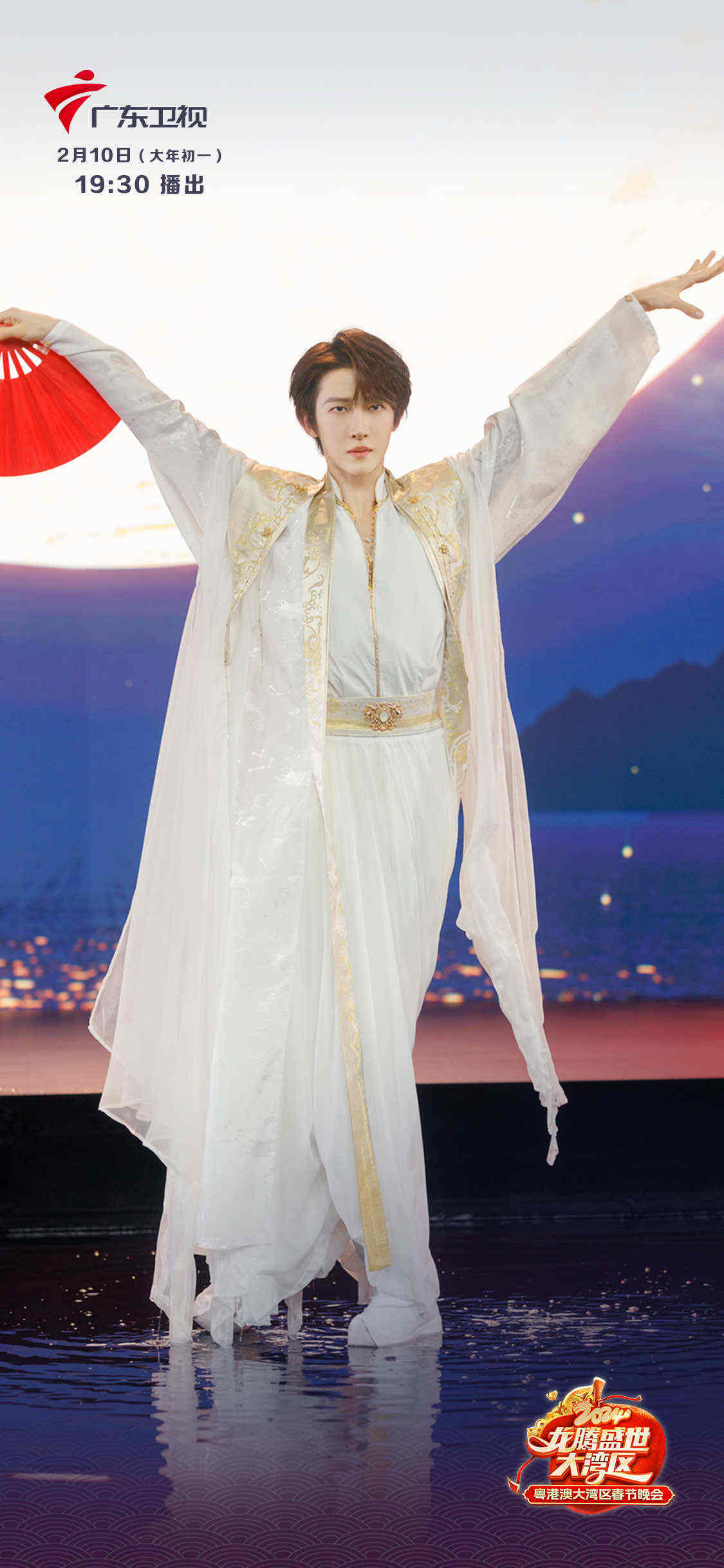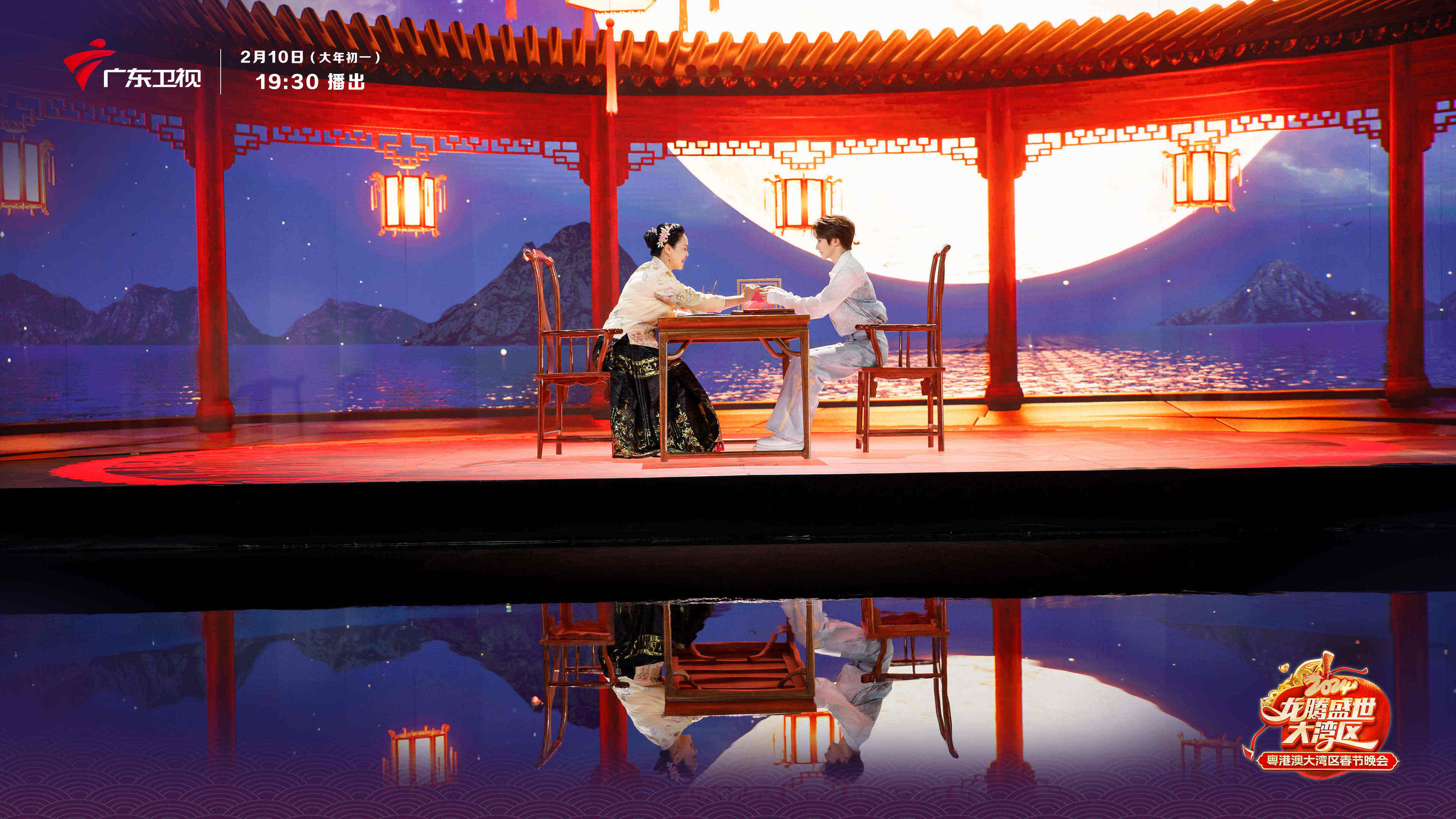 节目开篇聚焦国家级非物质文化遗产“佛山剪纸”,并用它充当打开虚拟世界的“密钥”,以微观视角带观众步入一个美轮美奂的剪纸世界。祥云、流水、繁花、佳果、镬耳屋、四脚亭……在岭南盛景的装点下,国风少年刘宇白衣入画。这一刻,时空破壁重组,传统文化与青春潮流“双向奔赴”。据悉,为了凸显《彩云追月》的灵动隽永,该片采用了大面积的水域舞台,水面涟漪造成灯光反射,美轮美奂。