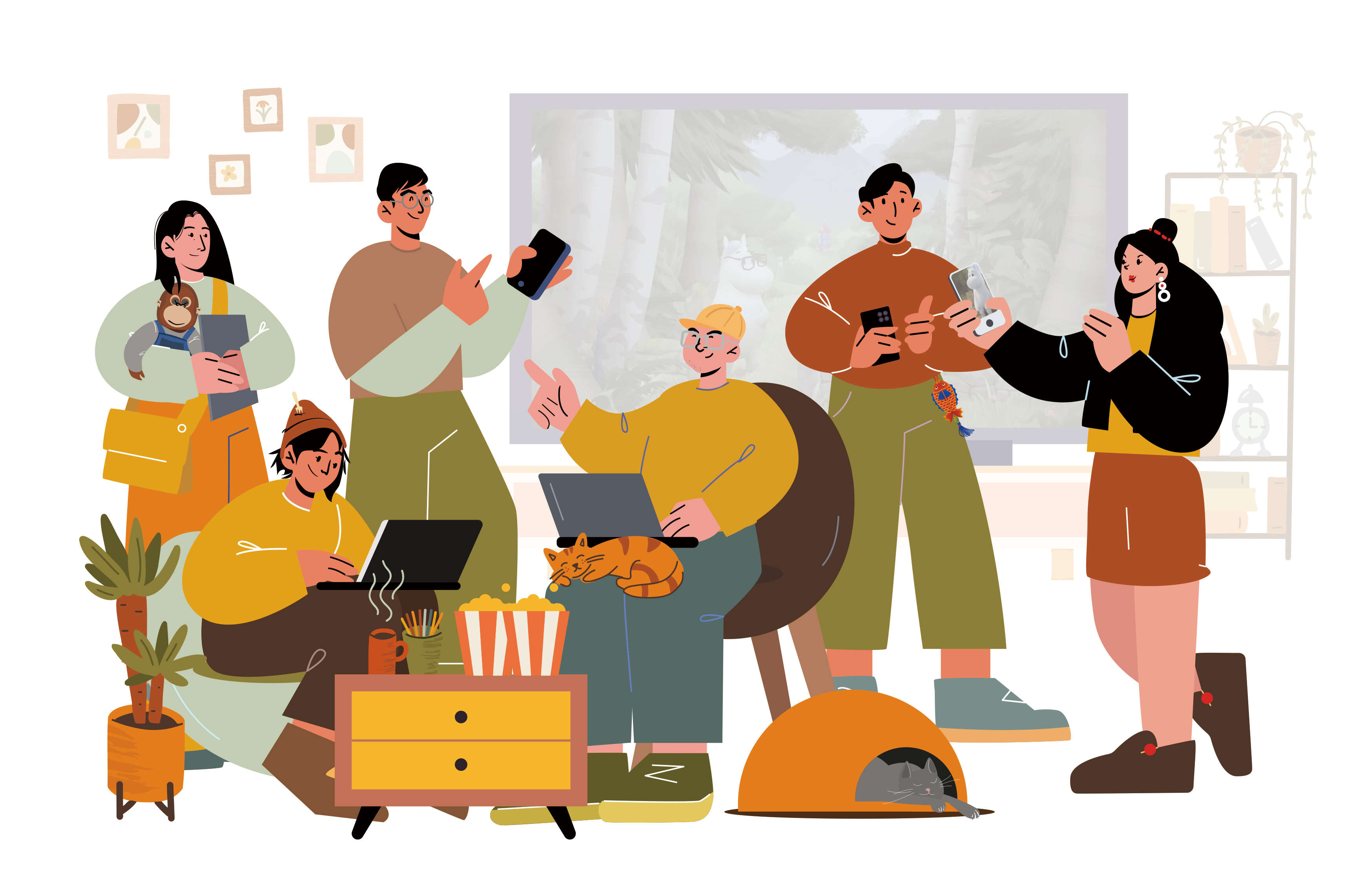 广东的80后、90后对姆明的初印象,很可能是二十多年前翡翠台引进的、由东京电视台于1990年制作的动画,当时的译名是《小肥肥一族》。《姆明山谷》则由芬兰和英国共同制作,在2019年至2022年共播出三季。首先令人眼前一亮的就是画面的提升:《姆明山谷》用了当时最先进的3D CGI技术制作,每一只姆明身上的绒毛都纤毫毕现——是的,姆明真不是滑溜溜的河马!其次,每一个人物的性格都比旧版更加鲜明:心地善良的少年姆明、外柔内刚的姆明妈妈、热爱冒险的姆明爸爸、爱美爱浪漫的歌妮、调皮捣蛋的阿美、热爱孤独的史力奇、滑稽可爱的史尼夫……对了,还有神秘的树精,它们总是成群出现,滋啦滋啦地放着电,招来暴风雨后又神秘消失。姆明山谷就是一个世外桃源。居民们依天气变换、四季更迭而生活,活得既平静又精彩,连空气都充满了爱。