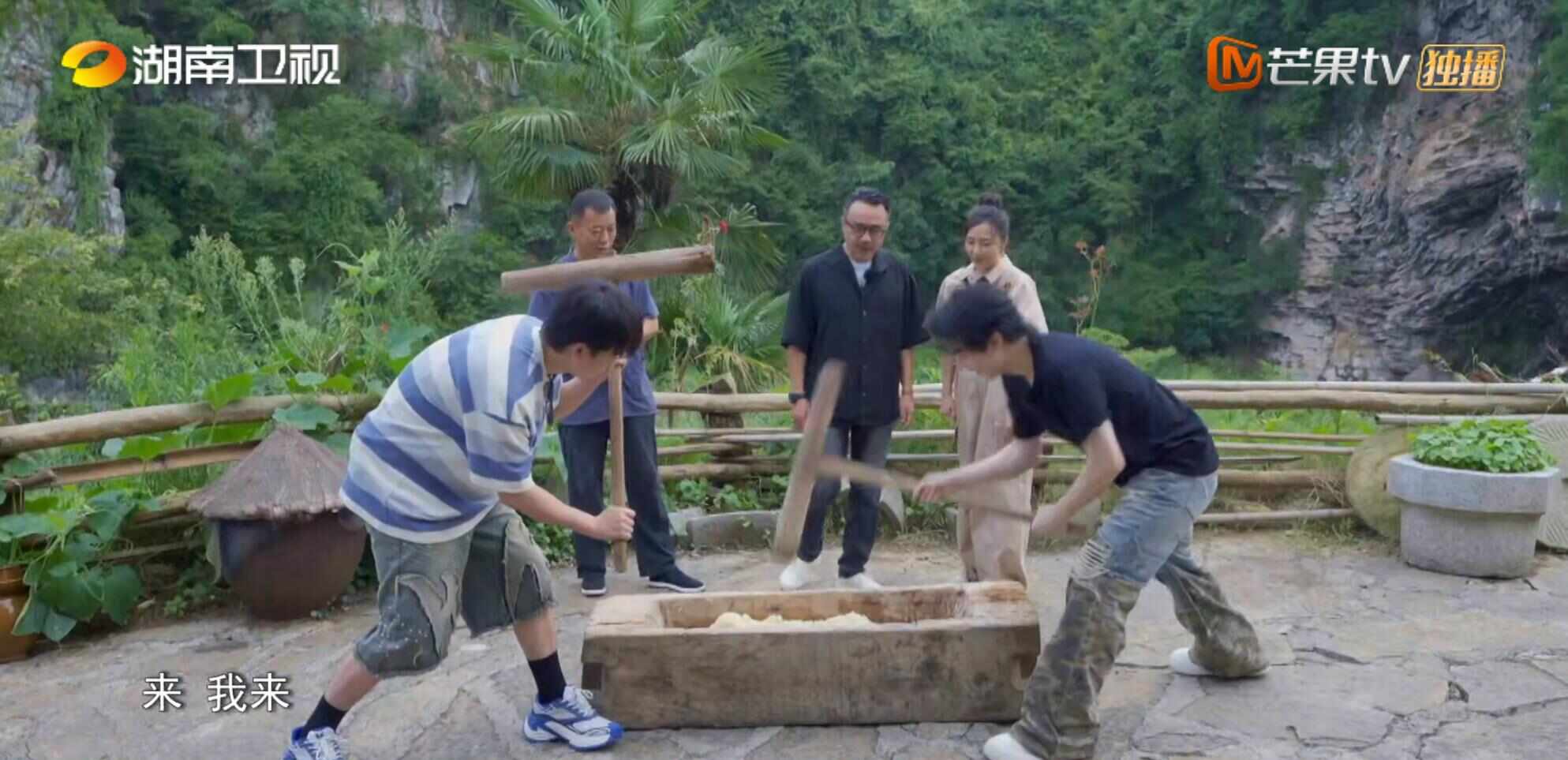 随后,汪涵、阿朵、吴泽林、庄宇光在龙山拜访手艺人彭南科。大家吃起自己打的糍粑、山里野生的菌子,看着潺潺的流水,静静地感受时间的流淌,品味生活的真谛。