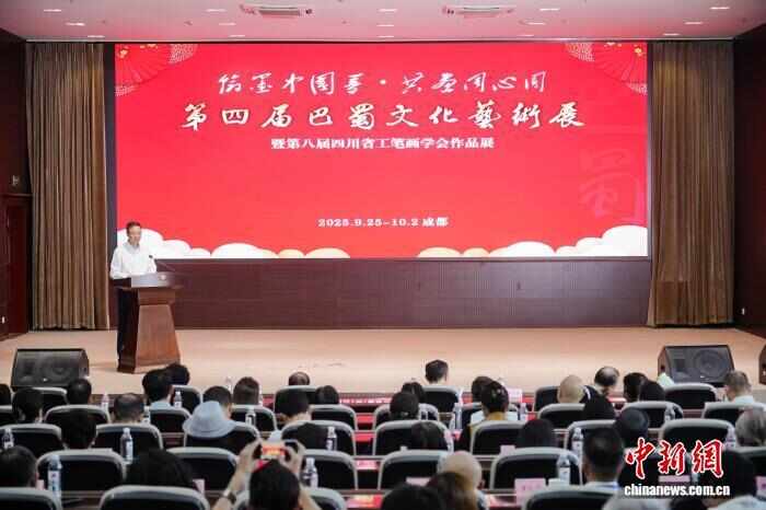 中新网成都9月25日电 (记者 岳依桐)由中共四川省委统战部、四川省社会主义学院(四川省中华文化学院)、四川省美术家协会主办的“翰墨中国梦·共画同心圆”第四届巴蜀文化艺术展暨第八届四川省工笔画学会作品展25日在成都开幕。
