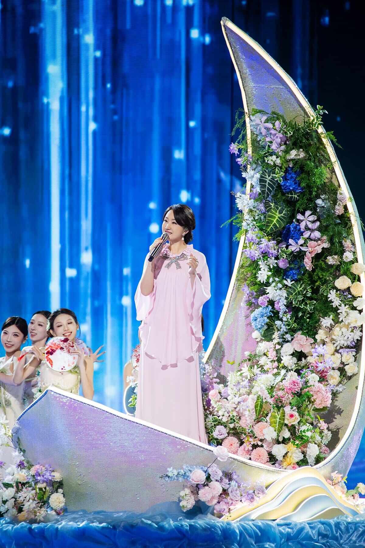 本次晚会最大的创新在于打破传统舞台表演模式,通过多维度技术手段重新定义“人—月—舞台”的三角关系。依托漳泽湖天然水域,制作团队打造360度环形水景舞台,结合水幕投影、AR、VR、XR等技术,实现“地月场景切换”,营造出极具沉浸感的神话意境。