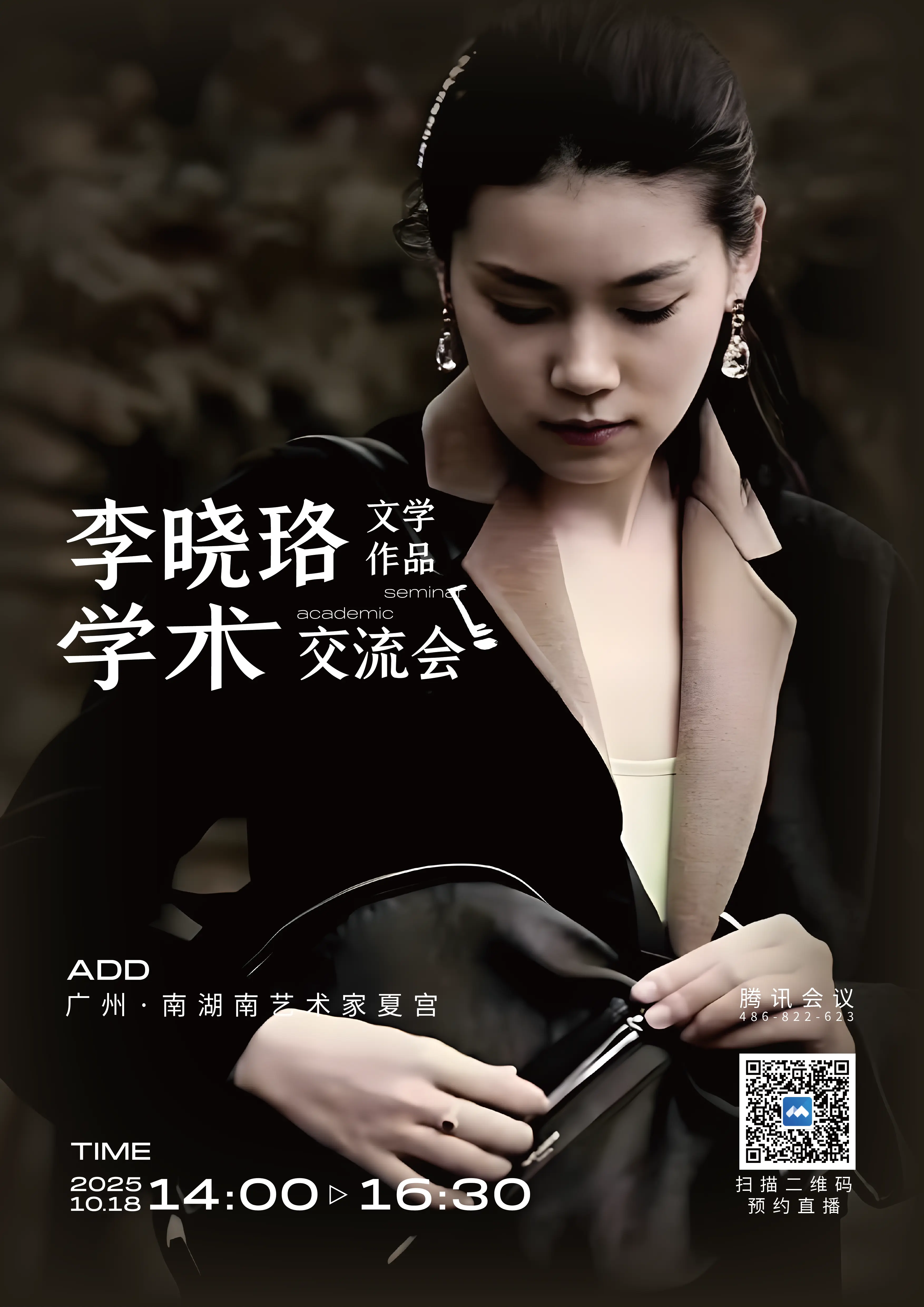 10月18日,李晓珞文学作品学术交流会将在线上举行。会议由广州·南湖南艺术家夏宫主办,来自中国人民大学、北京师范大学、暨南大学、首都师范大学、中国传媒大学、中国艺术研究院等高校、院所的10余位专家学者,将围绕李晓珞的文学作品展开研讨,挖掘作品的创作特质和艺术价值。