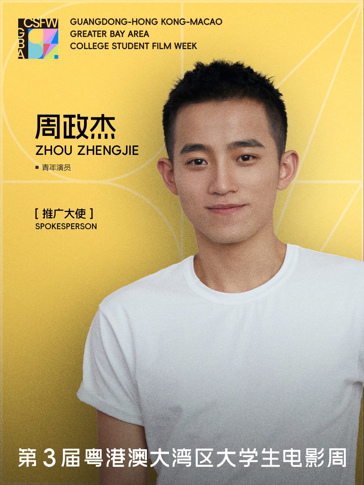 此外,凭借《志愿军:浴血和平》《捕风追影》等作品圈粉的青年演员周政杰,受邀担任本届电影周暨第21届广州大学生电影展推广大使,为青年影人的梦想助力。