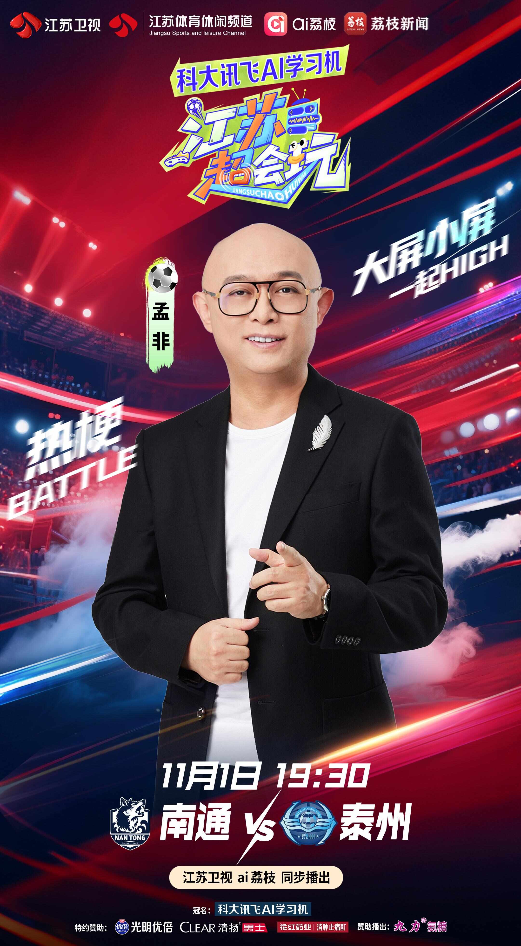 经过175天、84场比赛的激烈较量,“苏超”总冠军今晚将在南通队和泰州队之间产生。《江苏超会玩》将在19:30,对“苏超”总决赛进行现场直播。届时,江苏卫视主持人李响将搭档主持人孟非、著名解说员黄健翔坐镇直播间,与观众共同见证冠军的荣耀时刻。