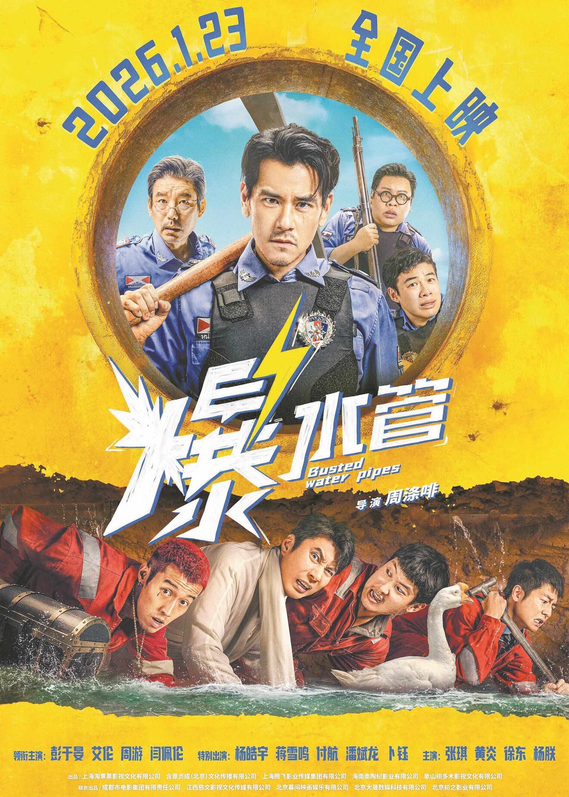 由周涤啡执导的犯罪喜剧《爆水管》,近日官宣定档2026年1月23日,并发布“爆个惊喜”版定档海报。影片中,一伙老实人警察和一群祖传盗墓贼,因“爆水管”而阴差阳错相遇,共同卷入了一起古墓宝藏案。
