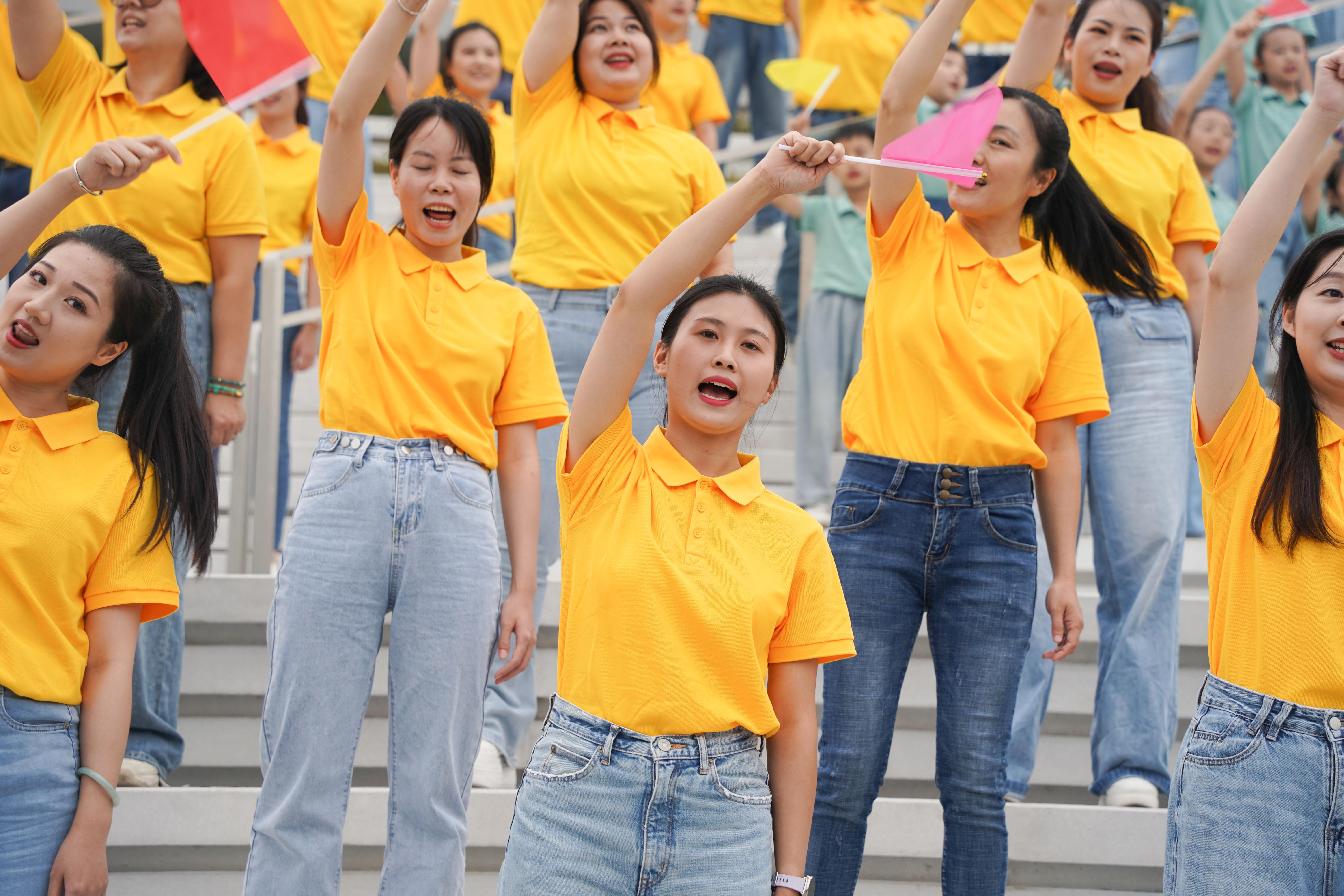 本次传唱活动参与阵容强大,来自广东省文化馆五个馆办艺术团的230名演员齐聚演出,成员涵盖6岁至72岁的各年龄段市民,包括学生、退休人员及各行业在职人员,充分体现了活动广泛的群众基础。他们以激情合唱与活力舞蹈,先后演绎了宣传推广曲《大家一起来》与会歌《气势如虹》,传递“全民全运、同心同行”的赛事精神,实现了火炬“力与火”的接力与群众文化“声与情”的传唱相融合,生动践行了“全民参与”的赛会理念。