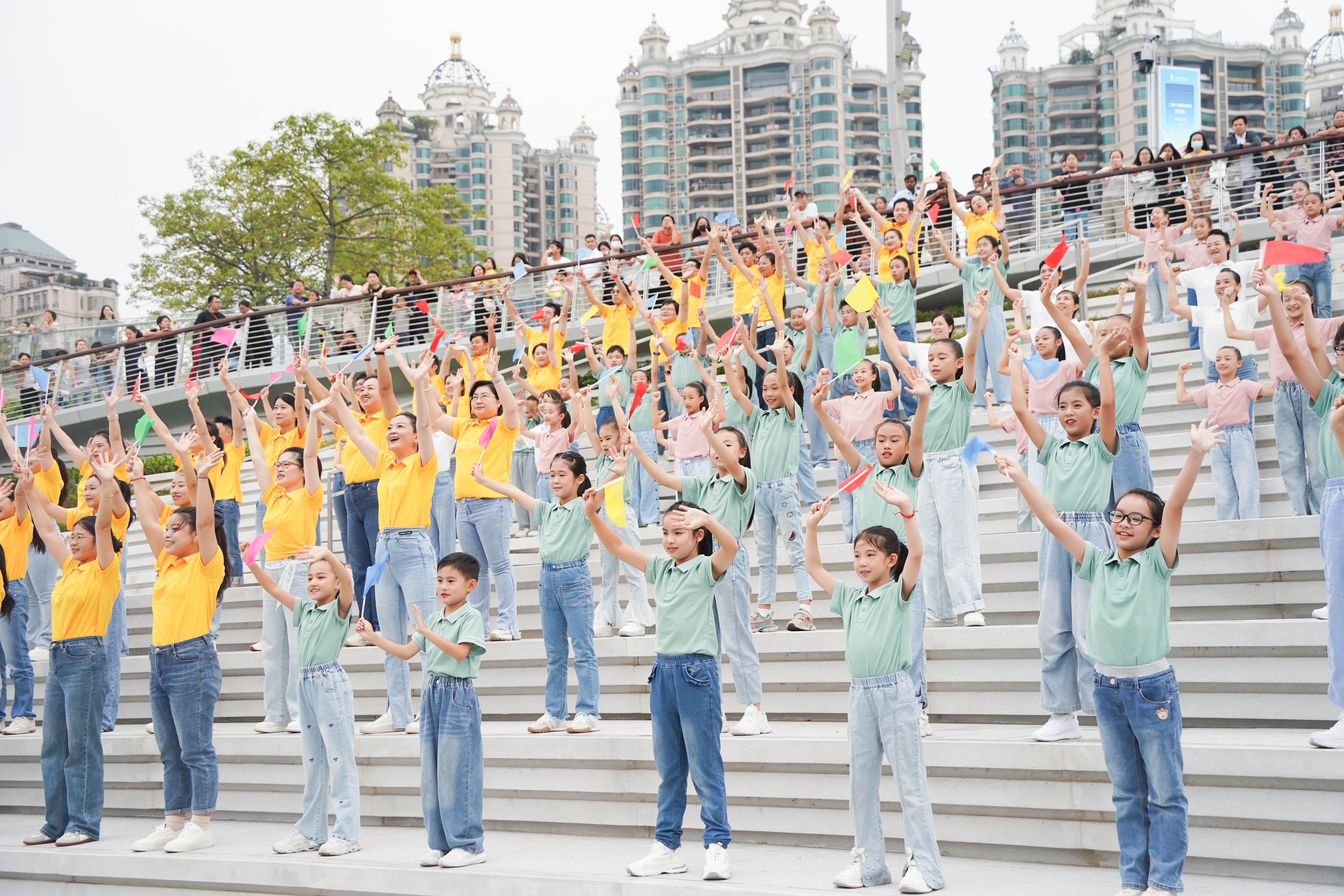 13时,活动正式启动。省文化馆少儿舞蹈团与老年大学舞蹈队率先在海心桥及媒体港公共空间翩然起舞,共同演绎宣传推广曲《大家一起来》。孩子们的天真活泼与长者的精神矍铄相映成趣,在珠江畔舞动出一幅全龄参与、喜迎全运的生动画面。