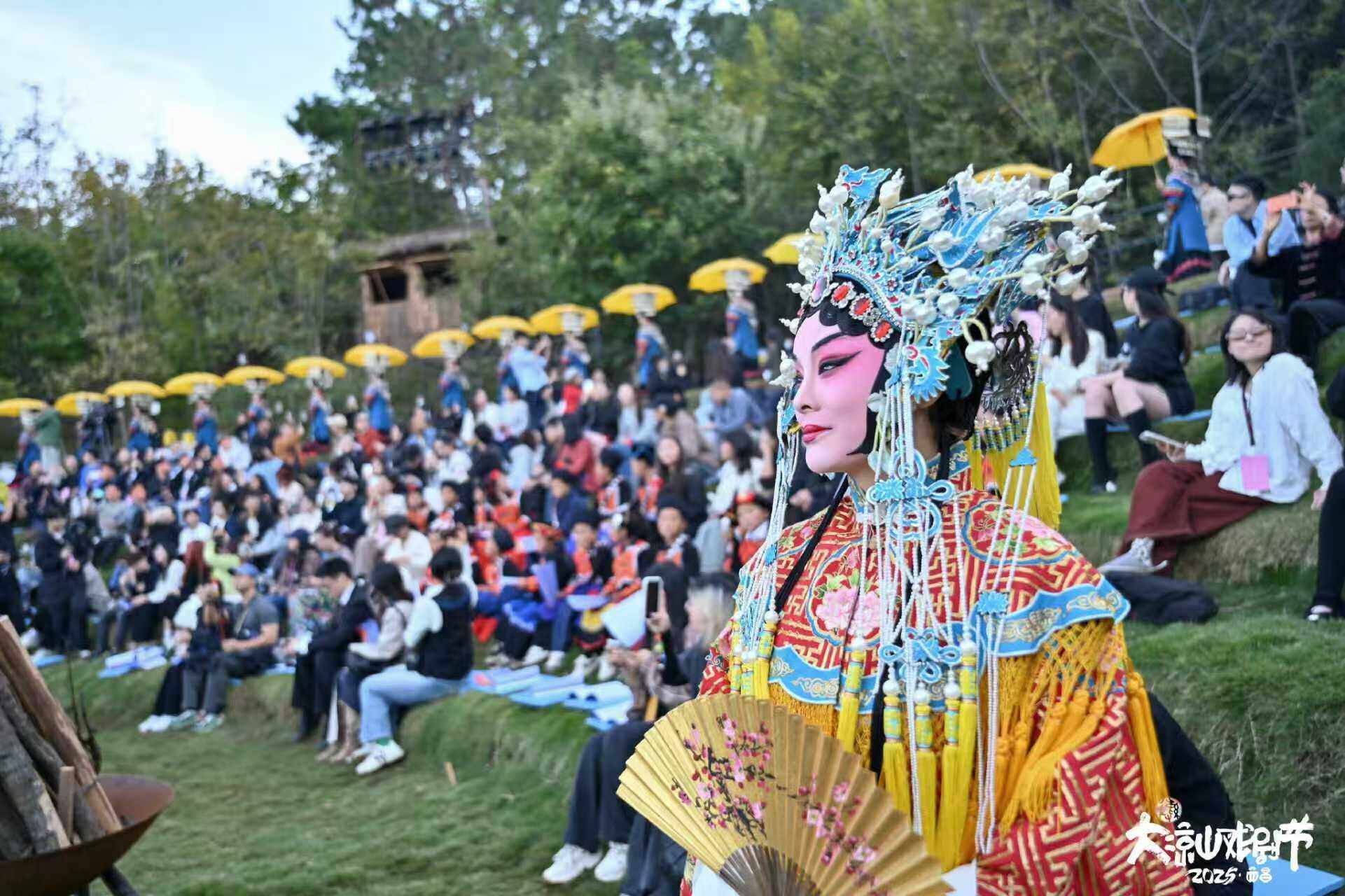 在四川省级非遗代表性项目“布拖高腔”声中,朵洛荷惊艳登场。启幕式分为“入冬叙、迎飨时、暖夜启”三个部分,现场传统戏剧展演精彩纷呈,昆曲《牡丹亭》的婉转唱腔、京剧《人间好》的优美身姿、川剧《花重锦官城》的细腻韵味以及川剧变脸的神奇变幻,让观众沉浸在传统艺术的魅力之中。