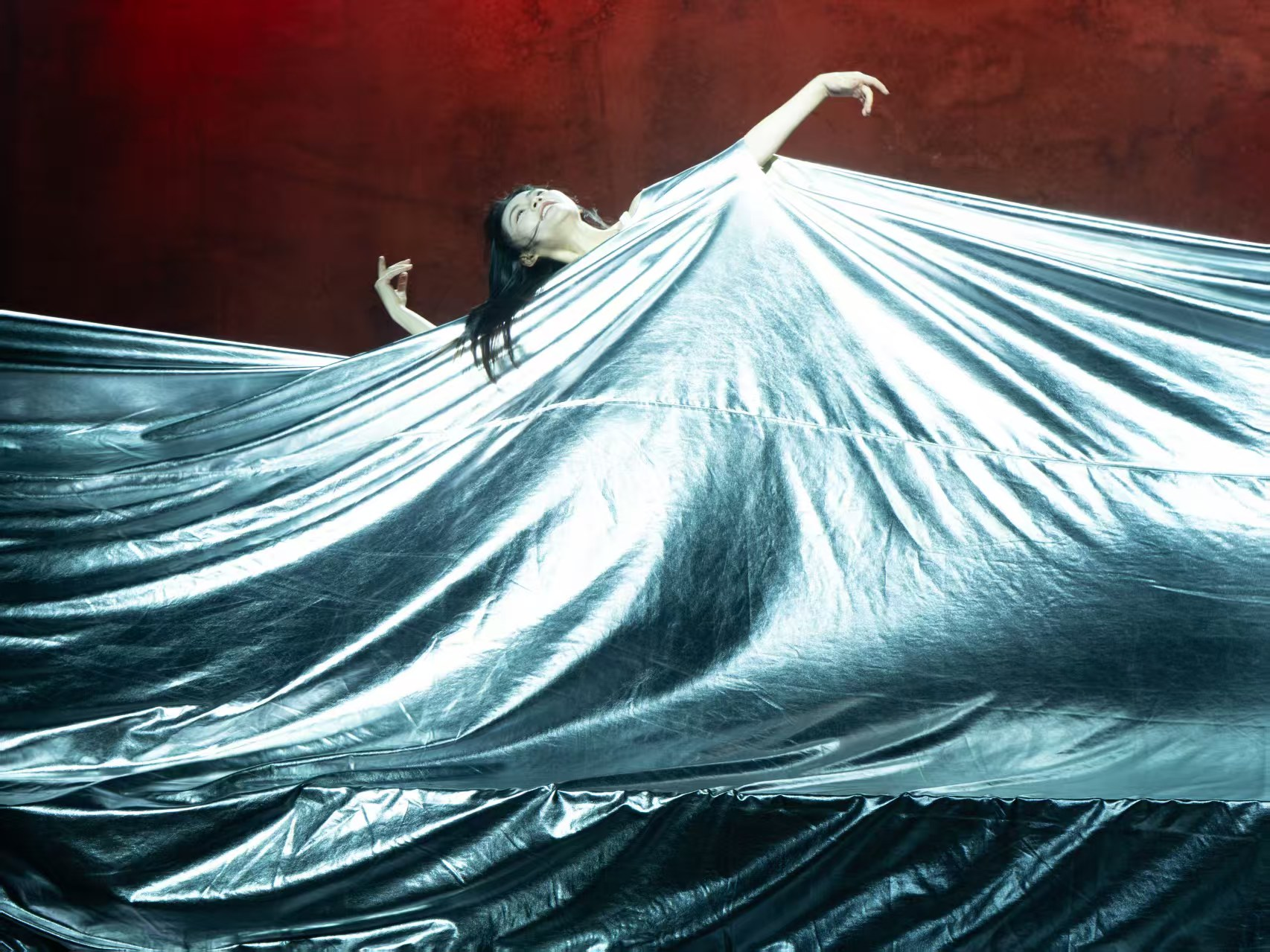 在《四个演员以及他们的表演方法论》中,“亮着微光的烛台”将观众的注意力拉回文学本身,引人深思当下人所失去的生活;“暗场踢足球”的音乐节奏与移动的光圈,导演武玮将其转变为电影主观镜头语言下的叙述;铺满舞台的“银色天衣”,在灯光的照耀下,观众仿佛感受到阳光照向雪山时的温暖和心灵震颤。