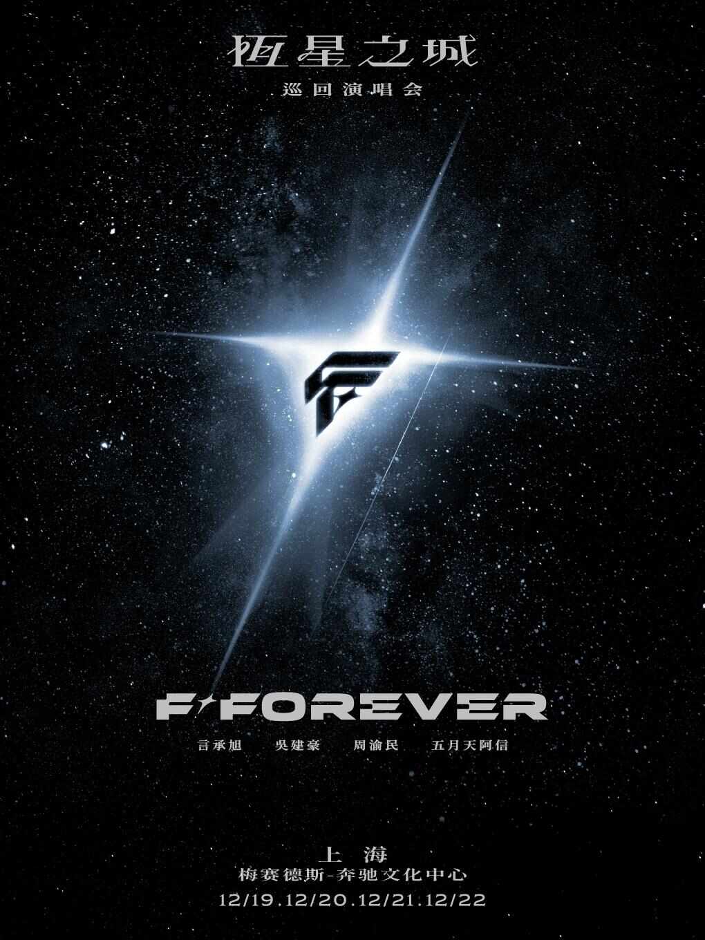 2026年是男子组合F4成立25周年的日子,此前一直有传F4将合体开唱,今日演唱会正式官宣:“F☆FOREVER 恒星之城巡回演唱会”上海站将于12月19日至22日在上海梅赛德斯奔驰文化中心连开两场。不过,从售票平台的官宣文案可见,原F4成员朱孝天不会参加,演唱会将由言承旭、吴建豪、周渝民和五月天阿信共同呈现。