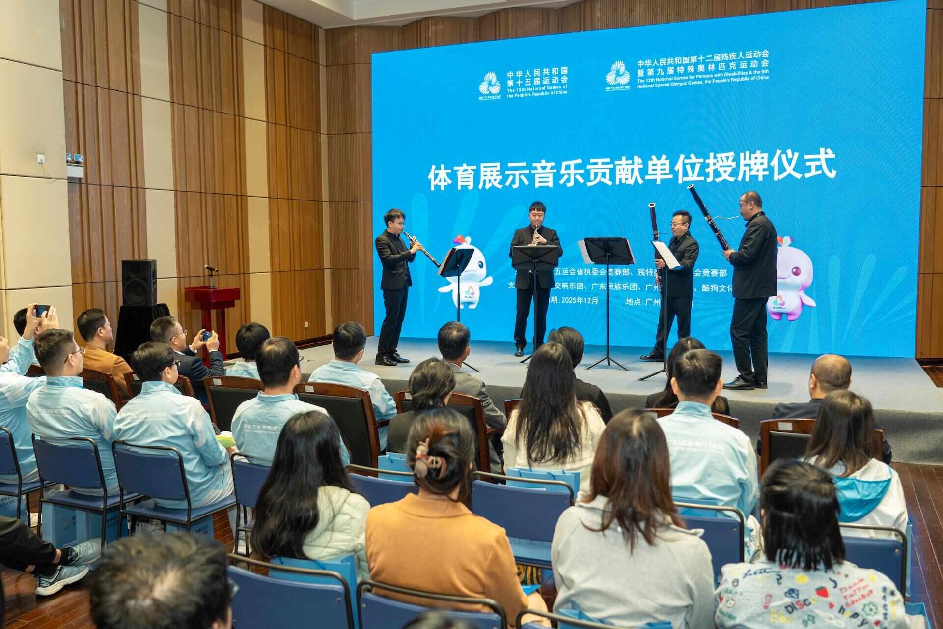 12月4日上午,第十五届全国运动会和全国第十二届残疾人运动会暨第九届特殊奥林匹克运动会(以下简称“十五运会和残特奥会”)体育展示音乐贡献单位授牌仪式在广州交响乐团演奏厅举行。广州交响乐团、广东民族乐团、广州体育学院、酷狗文化正式获颁“十五运会和残特奥会体育展示音乐库杰出贡献单位”。