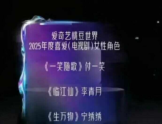 爱奇艺桃豆世界2025年度喜爱(电视剧)女性角色前三名