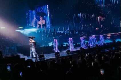 本轮演唱会采用40人大型乐队与24人舞团的舞台形式。交响乐、阿卡贝拉与原声乐器共同构成富有戏剧感与艺术气质的音乐结构,而舞者的加入进一步强化演唱会的叙事属性。整场演出以“人生航程”为隐喻架构,从渡船登场、灯塔引路,到威尼斯小舟、浮冰、天鹅、水母,再到最后乘坐“光艇”完成象征重生的段落,三面台为观众呈现出如沉浸式电影般的视觉体验,被网友评价为“今年最具叙事完整度的华语现场”。演唱会的七套造型也是关注焦点,这次的造型不只是好看,而是一次次风格跃迁——神秘、飘逸、锋利、浪漫,每套都让观众重新认识杨千嬅。这组造型像把时尚变成舞台叙事,每一套都是一个世界,层层推进,把三十年的故事穿在身上。其中一套造型,在2个篇章重复出现,有网友说“以为回到原点,却已不是当年的自己;Live My Life,是活在当下最诚实的姿态”。造型、舞美与叙事结合,构成了一次具有完整世界观的“自传式舞台”。