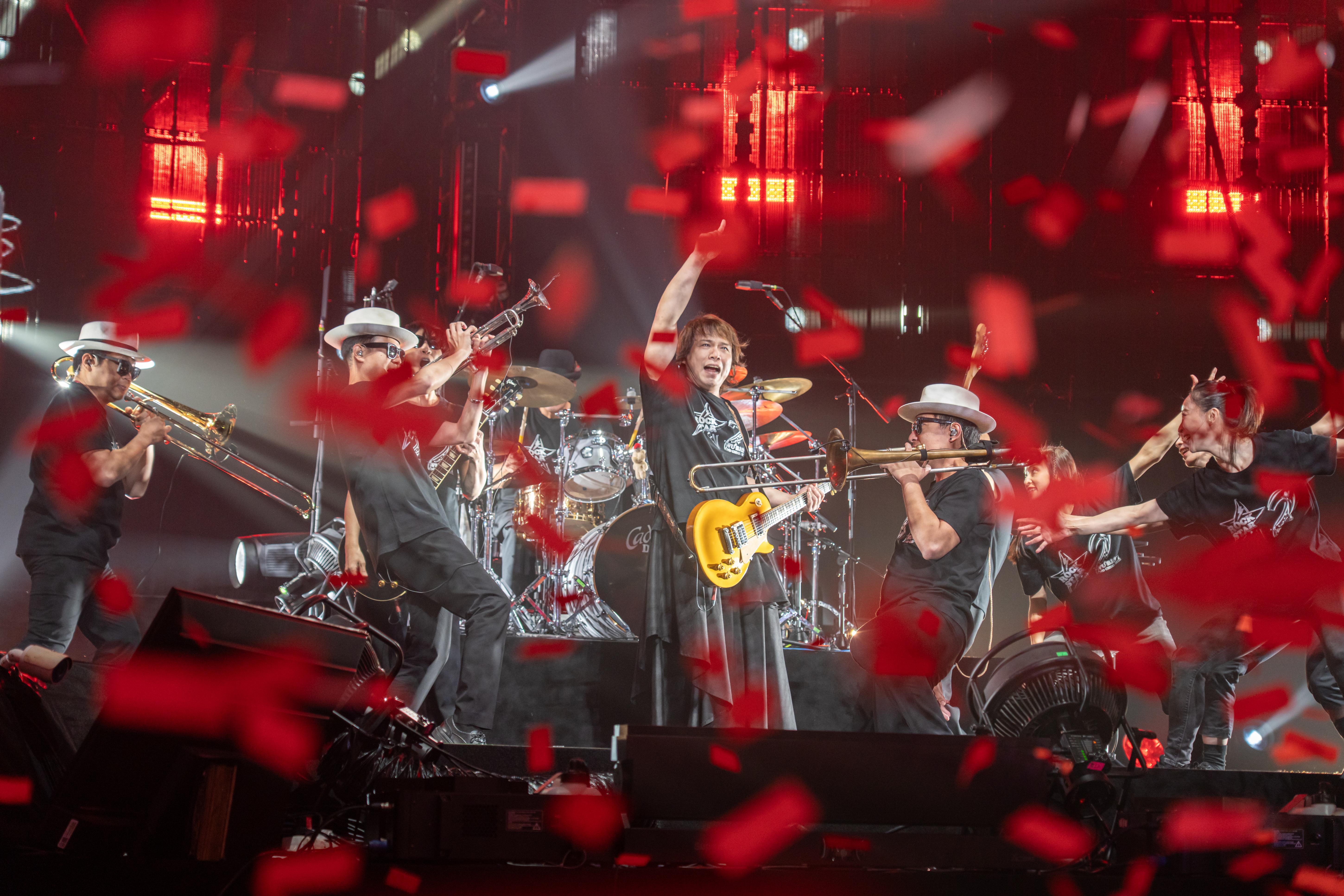 当然,正如伍佰所言,演唱会的主角不只他一人,全场的观众都是前来助阵的“特别来宾”。从《泪桥》《Last Dance》到《挪威的森林》《浪人情歌》,几乎每首歌曲都掀起全场大合唱。当国民级金曲《梦醒时分》的旋律响起,又一个名场面再现:伍佰只唱了第一句的前两个字“你说”,观众便自动自觉接着唱整首歌。伍佰本人“只能”当伴奏和指挥,开心“欣赏”观众们的大合唱。