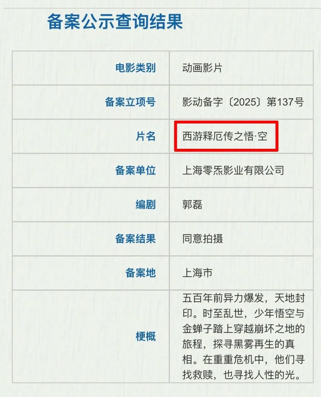 《西游·缘劫》并非孤例。同期备案的神话题材动画电影多达七部,西游系列独占四席:《炽焰·铁扇公主》,为铁扇公主打造独立英雄前传,将火焰山与共工撞天柱神话挂钩;《西游之流沙河》为沙僧“翻案”,称其被贬源于二郎神构陷,并增加爱情线;《西游释厄传之悟·空》描绘少年悟空与金蝉子在崩坏世界中的公路片式冒险。